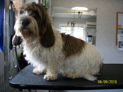 Frida, inne för putsning och bad innan sin resa till Finland!Griffonblandisen, Gibson ville besöka hundfrisören innan sin hemresa till Skåne...
